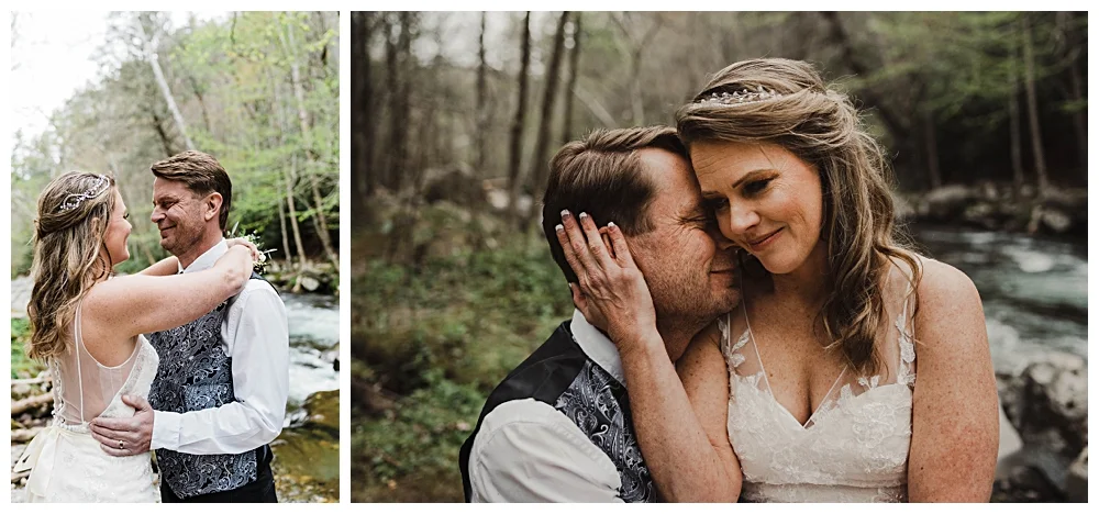 Robin and Toby's Great Smoky Mountains National Park elopement at Spence Cabin in Gatlinburg, TN was the pure definition of what a gorgeous Smoky Mountain spring should be. Beautiful greenery, freshly bloomed dogwood trees, the relaxing babble of Little River and the cutest little cabin situated in a quaint setting. Spence Cabin is located in the Historic Elkmont District of the park and is a beautiful venue for destination and local elopements and intimate weddings alike.